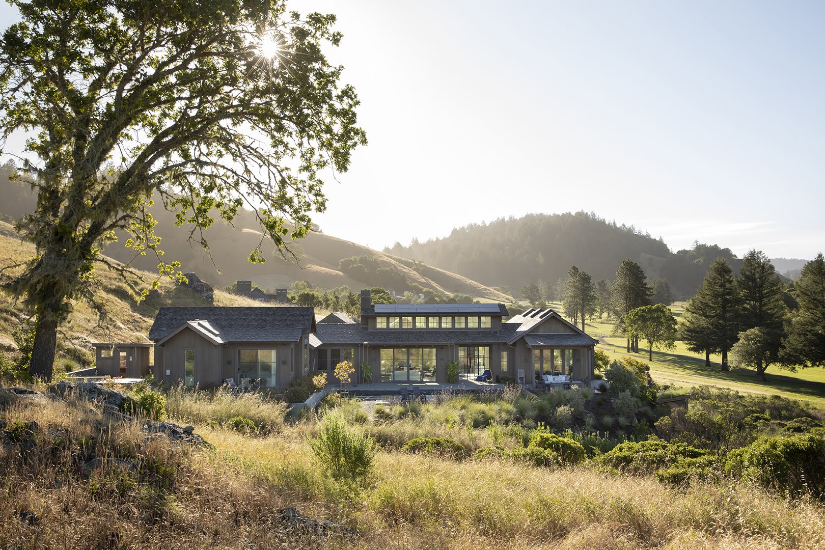 This idyllic home, set among West Marin’s wild land, interacts with nature at every turn. The team took inspiration from San Geronimo’s untamed landscape, the property’s western sun exposure, and cooling marine breezes. A boomerang-shaped, low-lying compound was designed where light would permeate rooms from every angle, and the house itself would lead guests outside through a series of breezeways and sliding doors. This residence is truly a home inspired by and connected to nature.